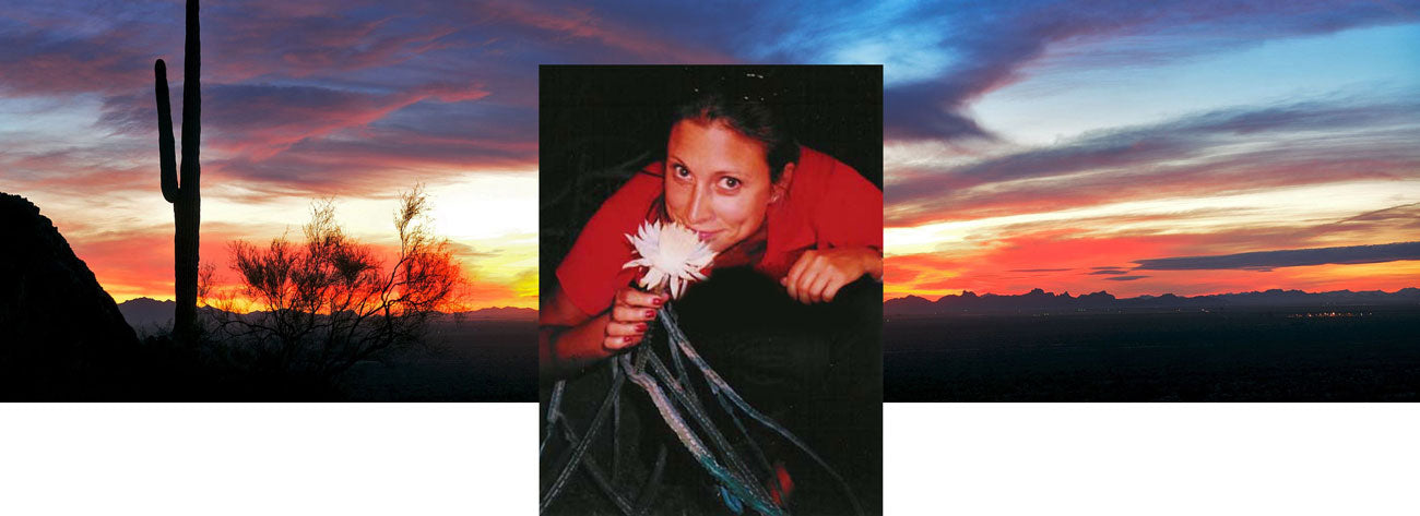 The Desert Botanical Garden in Phoenix is home to the world’s largest and most diverse collection of succulent plants, including 40 Queen of the Night! A perfumer and I worked with the Garden’s horticulturist who kept watch on the Queen’s bloom progress that summer, so the trip could be arranged to coincide. The perfumer stayed for 10 days, eagerly awaiting the night the flowers were going to start their blooming cycle. I remember joking with him that all of our pacing and waiting brought to mind an expectant father/family, waiting for a baby to be born…
