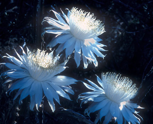 The Queen of the Night cactus blooms only one night each year, enveloping the desert with its exotic, inviting perfume.
